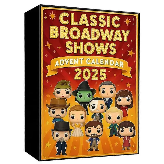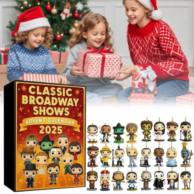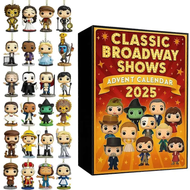 Klasične predstave na Broadwayu Adventni koledar 2025 24-dnevno odštevanje z glasbenimi liki, praznična darilna škatla za otroke in odrasle