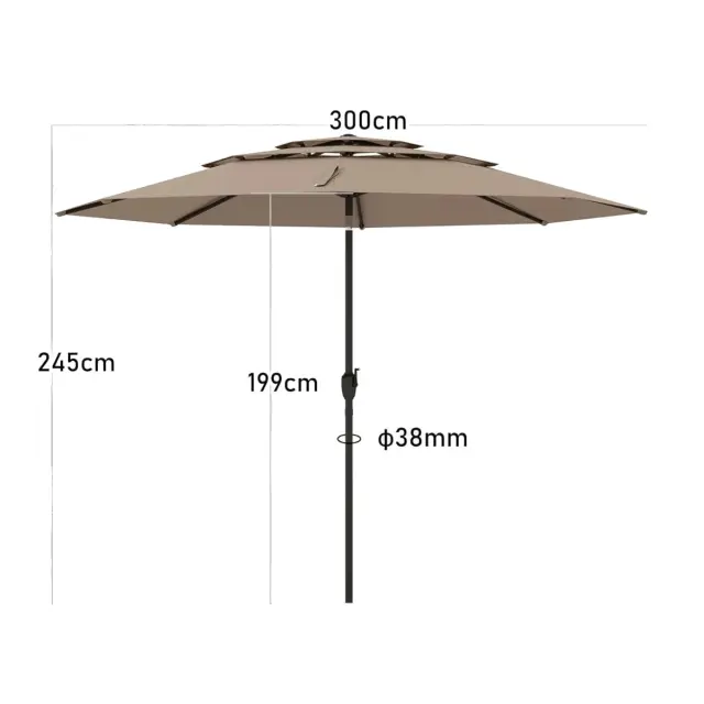 Klasični vrtni dežnik z prezračevalnim sistemom, ročaj, Ø300 cm, rjava barva