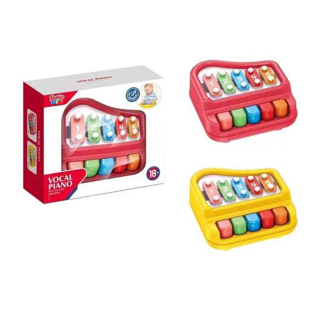 Ta vokalna klavir je popoln način za začetek učenja glasbe! Ima plastično konstrukcijo v slogu risanke, kar otrokom od 18 mesecev do 4 let omogoča enostavno raziskovanje njihovih glasbenih talentov. Klavir z zvončki je opremljen s 5 barvnimi tipkami, ki lahko predvajajo 5 različnih lestvic glasbenih tonov. Večbarvni dizajn klavirja in tipk bo pritegnil pozornost vašega otroka ter spodbudil sposobnost prepoznavanja barv in glasbenih tonov ter senzomotoričnih spretnosti otroka. Igrača, ki ni samo zabavna, ampak tudi izobraževalna.