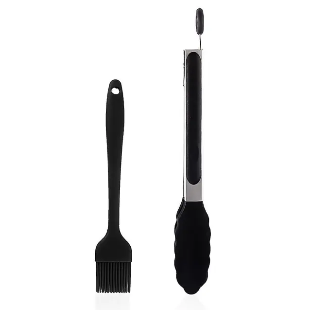 Klešče za žar Kuhinjske klešče iz nerjavečega jekla in 2-delni komplet krtač iz silikona za hrano (črna)