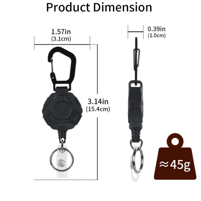 Visoka elastičnost: Prosimo, upoštevajte: to niso originalni deli. Izkusite udobje ključnega obeska z visoko elastičnostjo. Jeklena žica je zasnovana za gladko in zanesljivo izvlečenje, kar zagotavlja, da so vam ključi vedno na dosegu roke. Ta funkcija je še posebej uporabna za posameznike, ki ključe pogosto uporabljajo čez dan. Robusten mehanizem za izvlečenje lahko prenese večkratno uporabo, zaradi česar je zanesljiv pripomoček za vsakodnevno nošenje. Ne glede na to, ali odklepate vrata, dostopate do omejenih območij ali preprosto ohranjate organiziranost ključev, visoka elastičnost tega ključnega obeska zagotavlja brezhibno in učinkovito izkušnjo. Močna sila izvleka preprečuje, da bi ključi ohlapno viseli, kar zmanjšuje tveganje poškodb ali izgube.