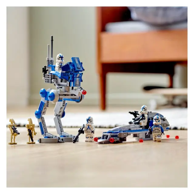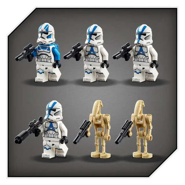 Uprizori epsko bitko med elitnimi klonskimi bojevniki 501. legije in bojnimi droidi separatistične vojske. Iz pilotske kabine AT-RT-ja se z elektrodaljnogledom razgleduj za droidi. Sproži napad z dirkalnikom BARC in streljaj z izstreljevalniki žebljičkov. Vrni ogenj z laserskim orožjem bojnih droidov. Kdo bo zmagal v razburljivi pustolovščini LEGO® Vojna zvezd™? Kar ti se odloči.