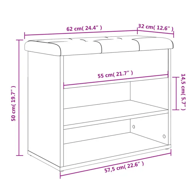 Klop za čevlje - Sedež za čevlje dimljen hrast 62x32x50 cm inženirski les