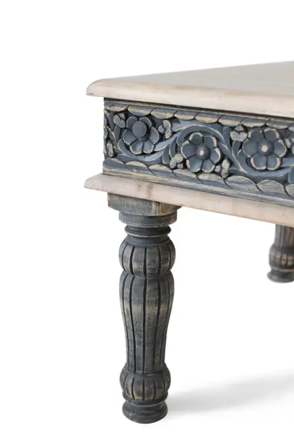 Klubska mizica iz mangovega lesa z železnim podnožjem, ročno izdelana