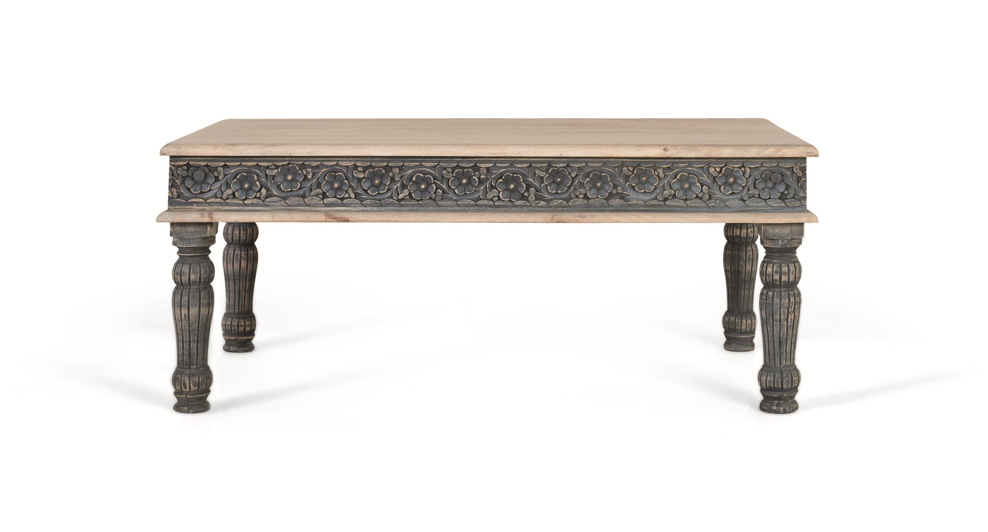 Klubska mizica iz mangovega lesa z železnim podnožjem, ročno izdelana