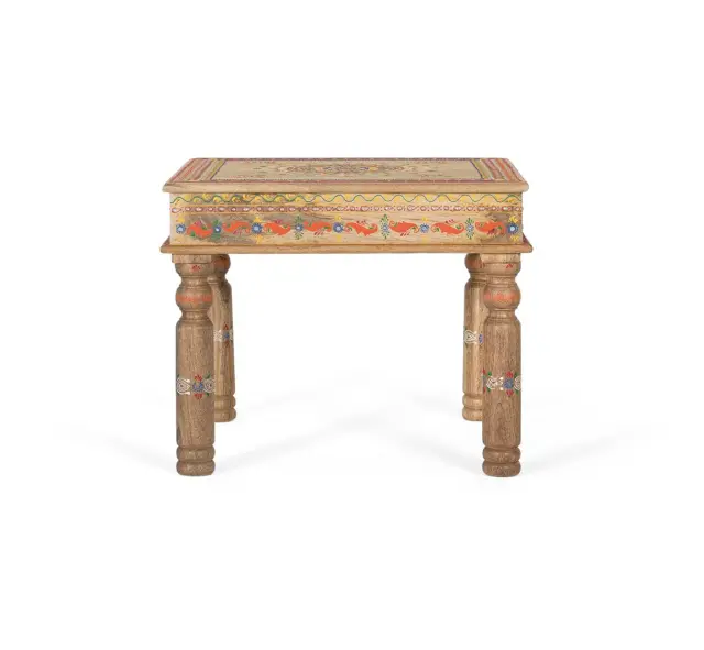 Klubska mizica iz mangovega lesa z ročno poslikanimi detajli