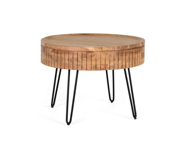 Klubska mizica iz mangovega lesa z železnim podnožjem, ročno izdelana