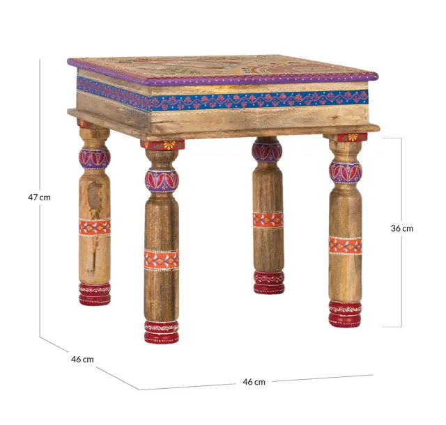 Klubska mizica iz mangovega lesa z ročno poslikanimi detajli