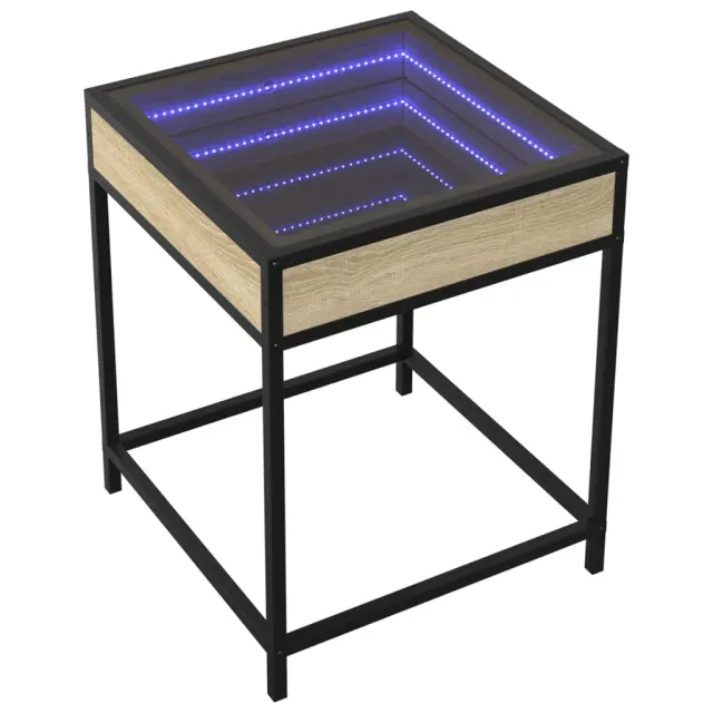 Klubska mizica - kavna mizica - Nizka mizica z neskončnimi LED sonoma hrast 40x40x51 cm