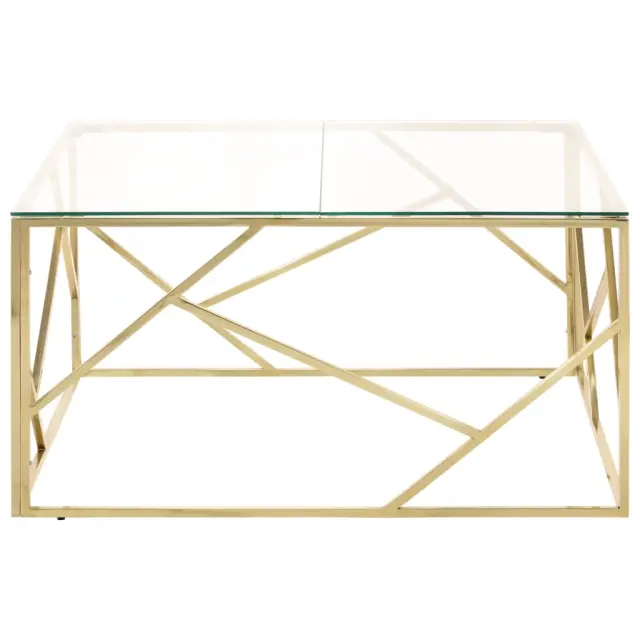 Klubska mizica - kavna mizica - Nizka mizica zlata nerjaveče jeklo in kaljeno steklo
