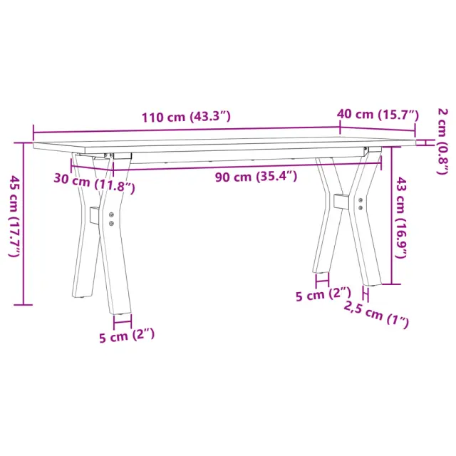 Klubska mizica - kavna mizica - Nizka mizica Y okvir 110x40x45 cm trdna borovina lito železo
