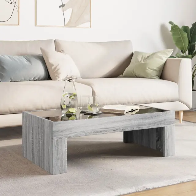 Klubska mizica - kavna mizica - Nizka mizica z neskončnimi LED siva sonoma 90x50x30 cm