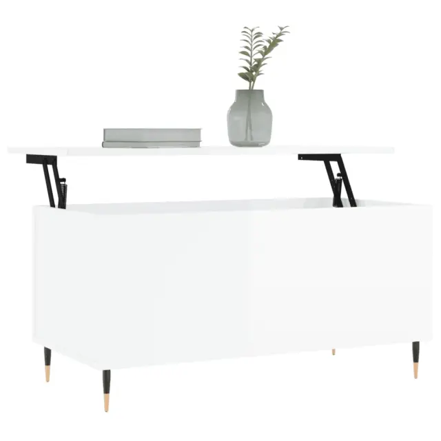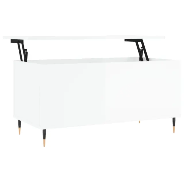 Klubska mizica - kavna mizica - Nizka mizica visok sijaj bela 90x44,5x45 cm inženirski les