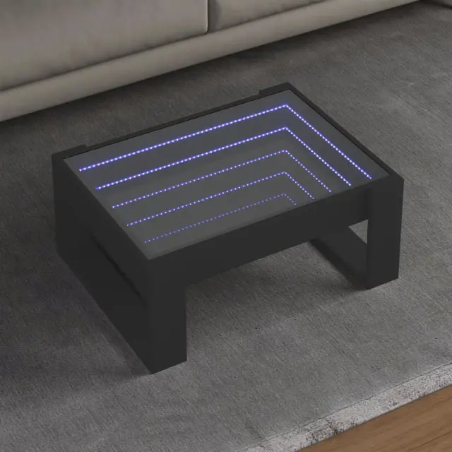 Klubska mizica - kavna mizica - Nizka mizica z neskončnimi LED črna 70x53x30 cm