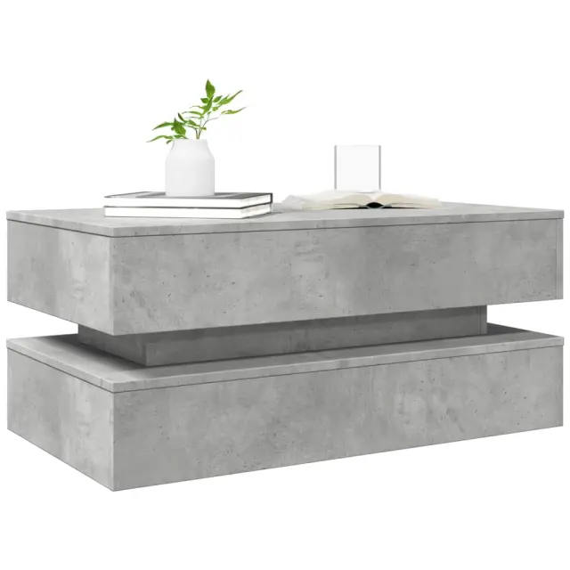 Okrasite svojo dnevno sobo s to sodobno mizico z LED lučkami, ki se lepo poda k s pohištvu v katerem koli slogu v vaši hiši. Vzdržljiv material: Inženirski les se ponaša z izjemno kakovostjo, gladko površino ter močjo, stabilnostjo in odpornostjo na vlago.Trdna površina: Trdna površina stranske mizice ponuja varen prostor za odlaganje pijač, vaz, skled za sadje ali okrasnih predmetov.RGB LED lučke: Mizica za ob kavč je opremljena z živahnimi RGB LED lučkami. Z različnimi prilagodljivimi meniji lahko brez težav spreminjate barvo luči in celo nastavite njihovo samodejno prilagajanje. Te LED lučke poudarjajo sodoben videz osrednje mizice in povečujejo njeno modno privlačnost.Vsestranski dizajn: Ta mizica za ob kavč lahko izpolnjuje različne zahteve, saj jo lahko uporabljate kot stransko mizico, čajno mizico ali telefonsko mizico. Dobro je vedeti:Izdelek ima priključek USB, ki zahteva certificiran vir napajanja 5 V USB (ni priložen).Barva: Betonsko sivaMaterial: Inženirski lesDimenzije: 90 x 50 x 40 cm (Š x G x V)Potrebno sestavljanje: Da Tega izdelka ne uporabljajte, če je katera koli komponenta polomljena, strgana ali manjka. Ta izdelek se napaja z DC 5 V, vendar certificirani 5 V vir napajanja USB ni priložen. Višja napetost lahko povzroči pregrevanje in poškoduje napravo ter povzroči potencialno nevarnost pregrevanja in požara.