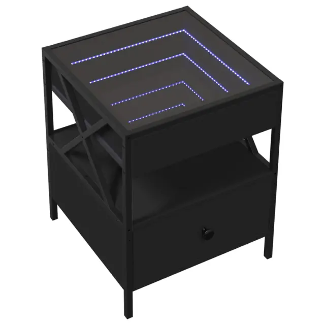 Klubska mizica - kavna mizica - Nizka mizica z neskončnimi LED črna 40x40x51 cm