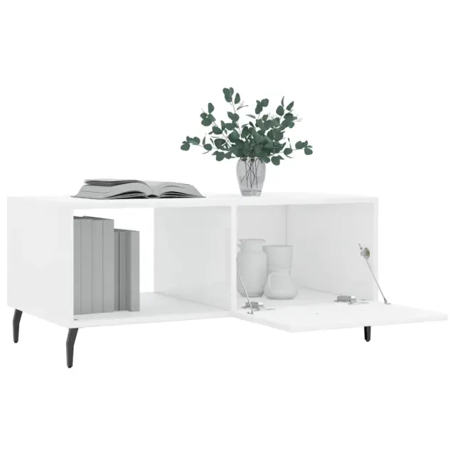 Klubska mizica - kavna mizica - Nizka mizica visok sijaj bela 90x50x40 cm inženirski les