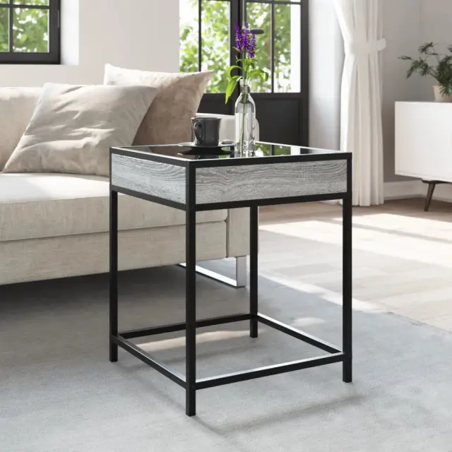 Klubska mizica - kavna mizica - Nizka mizica z neskončnimi LED siva sonoma 40x40x51 cm