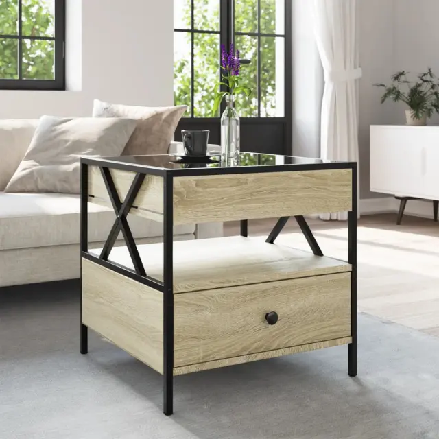 Klubska mizica - kavna mizica - Nizka mizica z neskončnimi LED sonoma hrast 50x50x51 cm