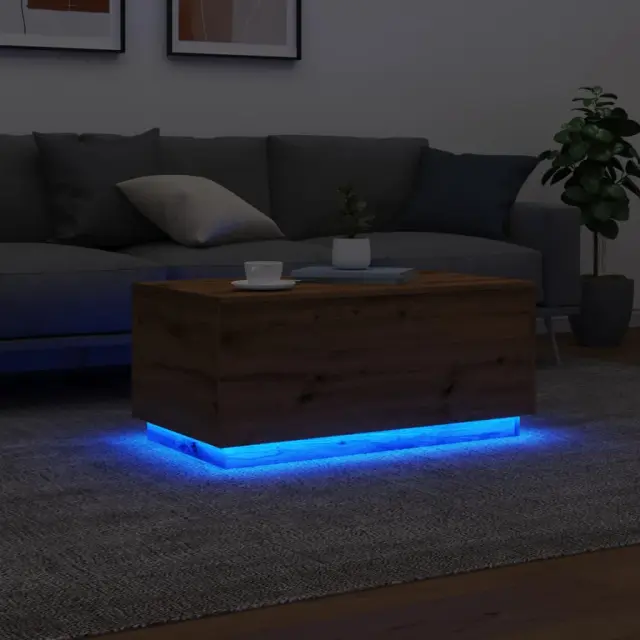 Klubska mizica - kavna mizica - Nizka mizica z LED lučkami artisan hrast 90x50x40 cm