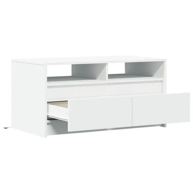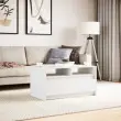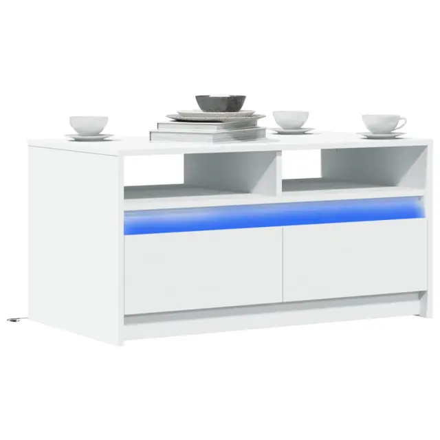 Klubska mizica - kavna mizica - Nizka mizica z LED lučkami bela inženirski les