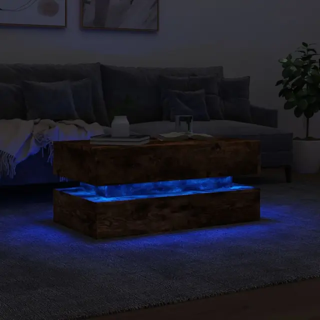 Okrasite svojo dnevno sobo s to sodobno mizico z LED lučkami, ki se lepo poda k s pohištvu v katerem koli slogu v vaši hiši. Vzdržljiv material: Inženirski les se ponaša z izjemno kakovostjo, gladko površino ter močjo, stabilnostjo in odpornostjo na vlago.Trdna površina: Trdna površina stranske mizice ponuja varen prostor za odlaganje pijač, vaz, skled za sadje ali okrasnih predmetov.RGB LED lučke: Mizica za ob kavč je opremljena z živahnimi RGB LED lučkami. Z različnimi prilagodljivimi meniji lahko brez težav spreminjate barvo luči in celo nastavite njihovo samodejno prilagajanje. Te LED lučke poudarjajo sodoben videz osrednje mizice in povečujejo njeno modno privlačnost.Vsestranski dizajn: Ta mizica za ob kavč lahko izpolnjuje različne zahteve, saj jo lahko uporabljate kot stransko mizico, čajno mizico ali telefonsko mizico. Dobro je vedeti:Izdelek ima priključek USB, ki zahteva certificiran vir napajanja 5 V USB (ni priložen).Barva: Dimljeni hrastMaterial: Inženirski lesDimenzije: 90 x 50 x 40 cm (Š x G x V)Potrebno sestavljanje: Da Tega izdelka ne uporabljajte, če je katera koli komponenta polomljena, strgana ali manjka. Ta izdelek se napaja z DC 5 V, vendar certificirani 5 V vir napajanja USB ni priložen. Višja napetost lahko povzroči pregrevanje in poškoduje napravo ter povzroči potencialno nevarnost pregrevanja in požara.