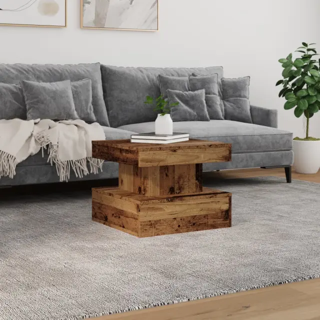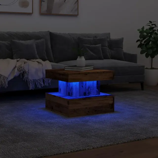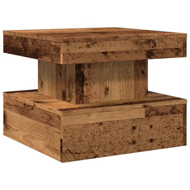 Klubska mizica - kavna mizica - Nizka mizica z LED lučkami starinski les 50x50x40 cm