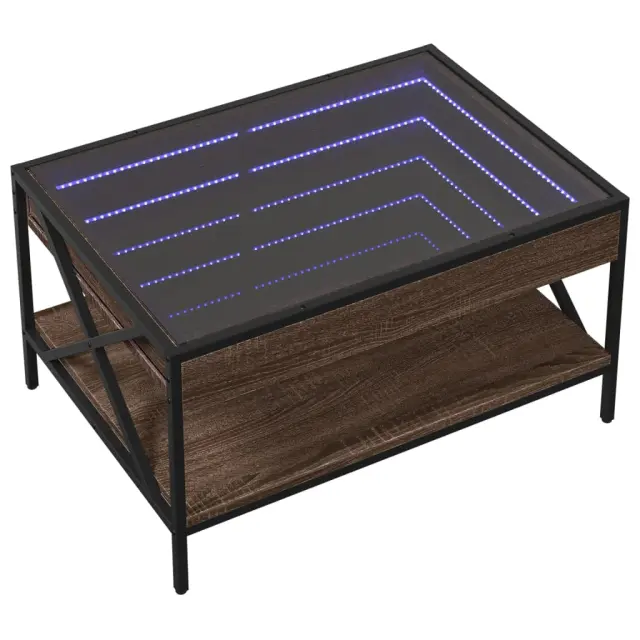 Klubska mizica - kavna mizica - Nizka mizica z neskončnimi LED rjavi hrast 70x50x38 cm