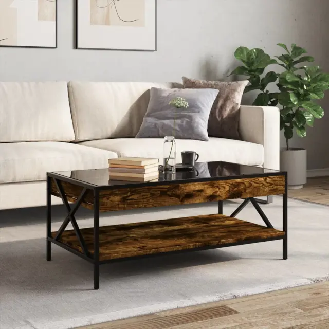 Klubska mizica - kavna mizica - Nizka mizica z neskončnimi LED dimljen hrast 90x50x38 cm