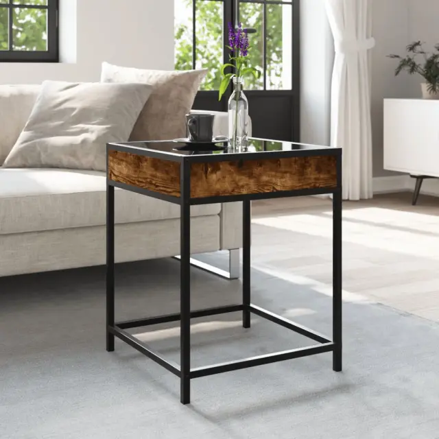 Klubska mizica - kavna mizica - Nizka mizica z neskončnimi LED dimljen hrast 40x40x51 cm
