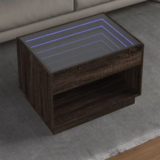 Klubska mizica - kavna mizica - Nizka mizica z neskončnimi LED rjavi hrast 70x50x50 cm