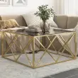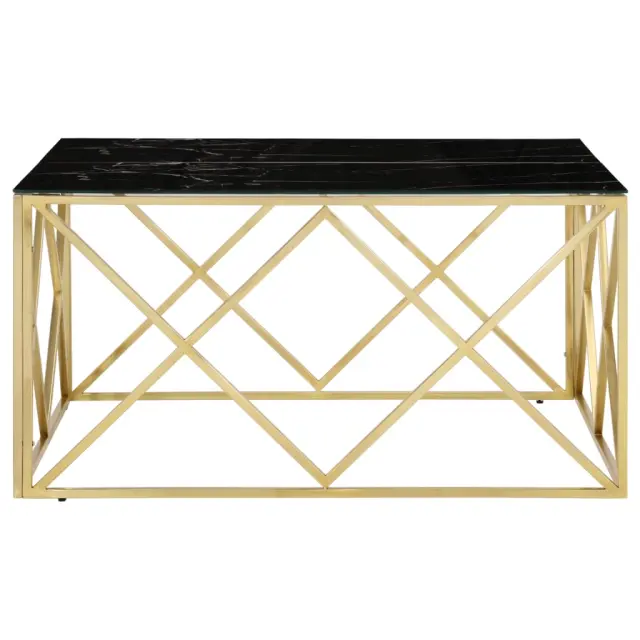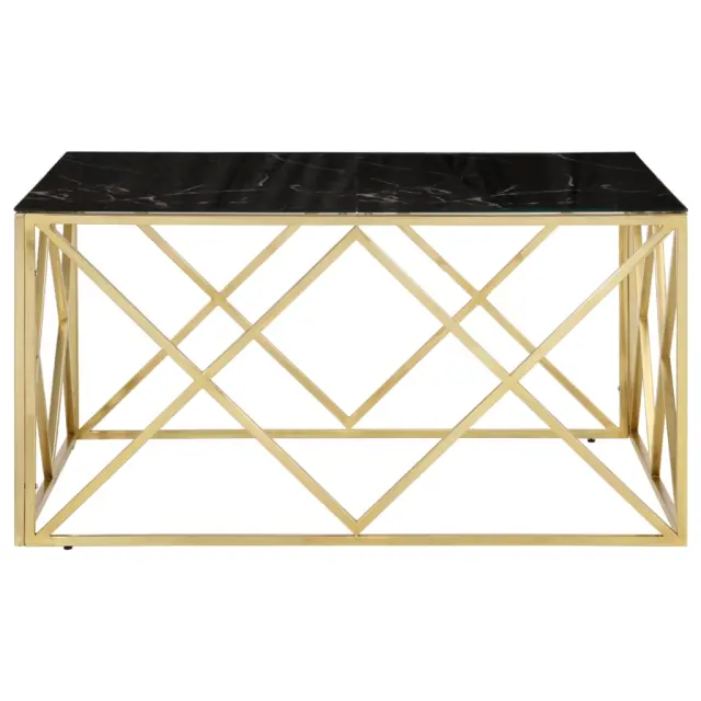 Klubska mizica - kavna mizica - Nizka mizica zlata nerjaveče jeklo in kaljeno steklo