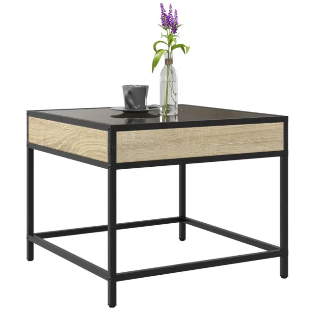 Klubska mizica - kavna mizica - Nizka mizica z neskončnimi LED sonoma hrast 50x50x41 cm