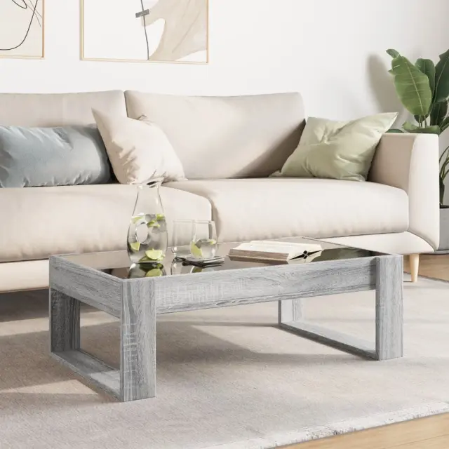 Klubska mizica - kavna mizica - Nizka mizica z neskončnimi LED siva sonoma 90x53x30 cm