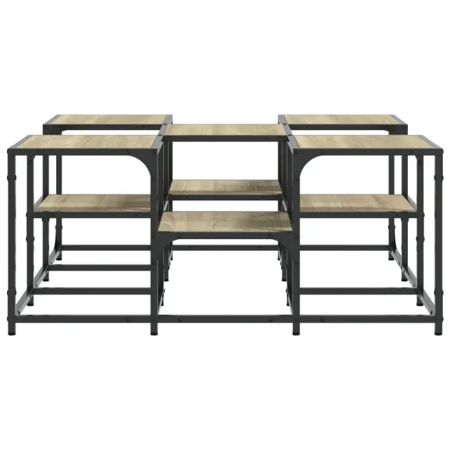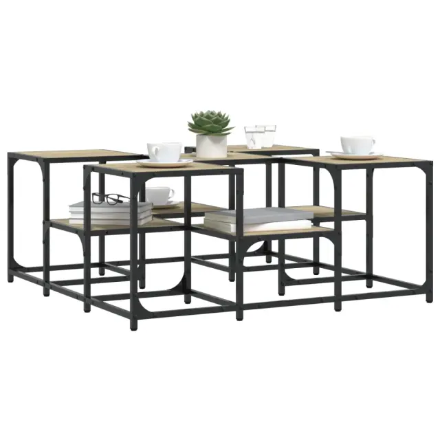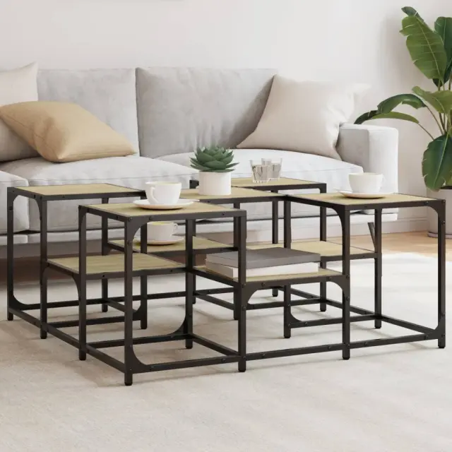 Dnevno sobo lahko okrasite s to elegantno mizico, ki se lepo poda k pohištvu v katerem koli slogu v vaši hiši. Vzdržljiv material: Inženirski les se ponaša z izjemno kakovostjo, gladko površino ter močjo, stabilnostjo in odpornostjo na vlago. Stranska mizica iz inženirskega lesa je preprosta za čiščenje.Robustna mizna plošča z 2 višinama: Ta mizica za ob kavč je zasnovana z 2 višinama mizne plošče za večplasten videz, ki ponuja dovolj prostora za knjige, okrasne predmete in druge dnevne potrebščine.Nastavljive noge: Nastavljive noge s plastičnimi blazinicami ohranjajo mizico za dnevno sobo uravnoteženo na neravnih tleh in povečujejo stabilnost.Kovinski okvir: Kovinski okvir vašim notranjim prostorom doda industrijski slog in hkrati zagotavlja vzdržljivost in stabilnost.Barva: Sonoma hrastMaterial: Inženirski les, kovinaDimenzije: 91 x 91 x 40 cm (D x Š x V)Maks. nosilnost na polico: 30 kgPotrebno sestavljanje: Da