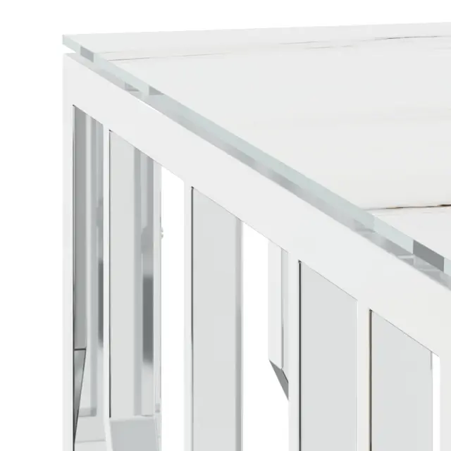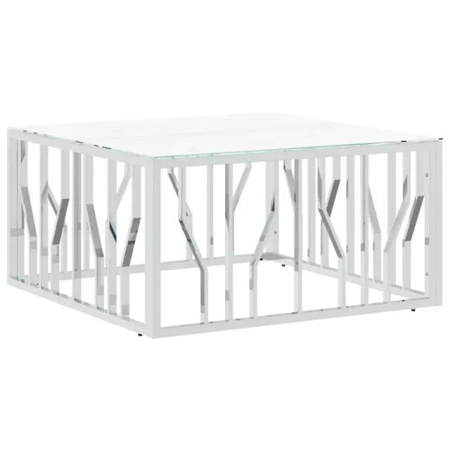 Klubska mizica - kavna mizica - Nizka mizica srebrna 80x80x40 cm nerjaveče jeklo in steklo