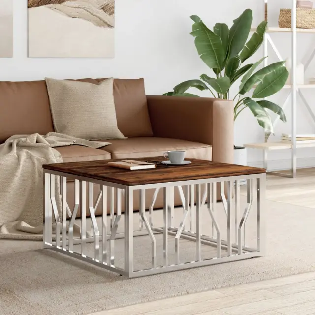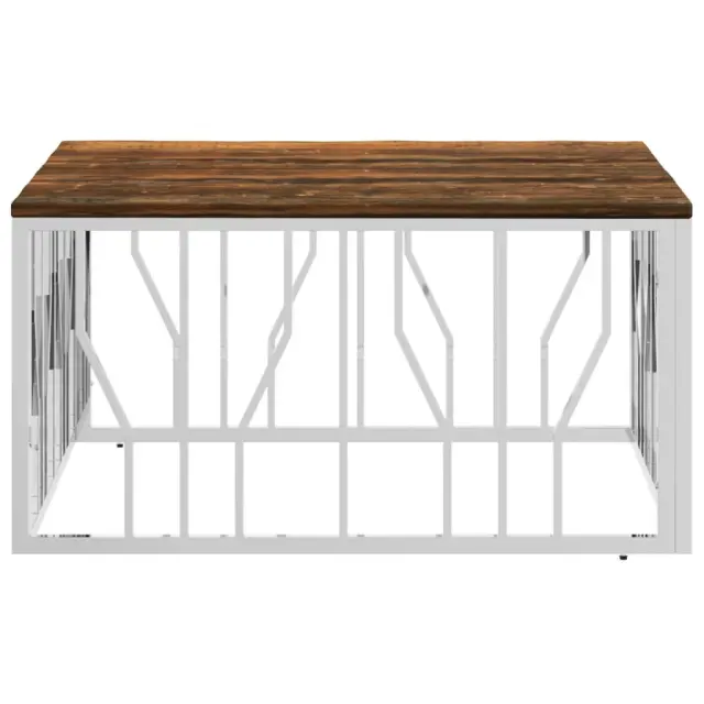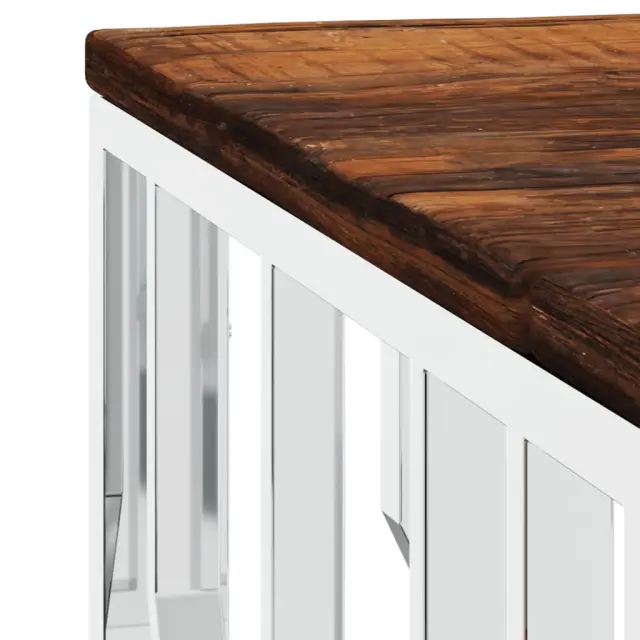 Klubska mizica - kavna mizica - Nizka mizica srebrna nerjaveče jeklo in trden predelan les