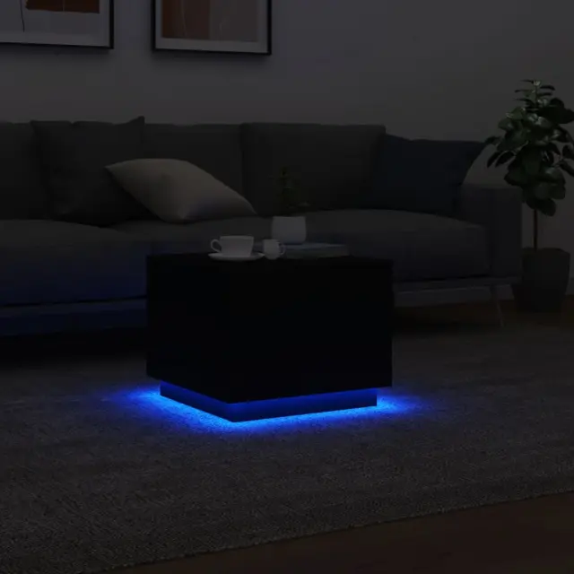 Klubska mizica - kavna mizica - Nizka mizica z LED lučkami črna 50x50x40 cm