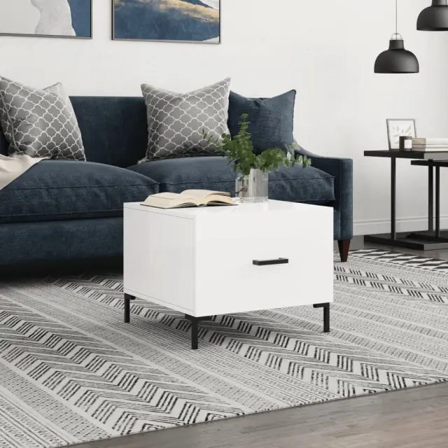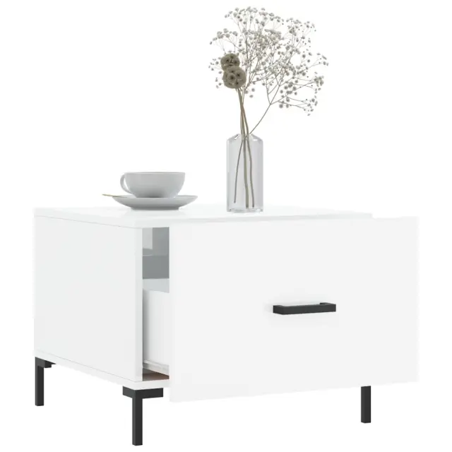Klubska mizica - kavna mizica - Nizka mizica visok sijaj bela 50x50x40 cm inženirski les