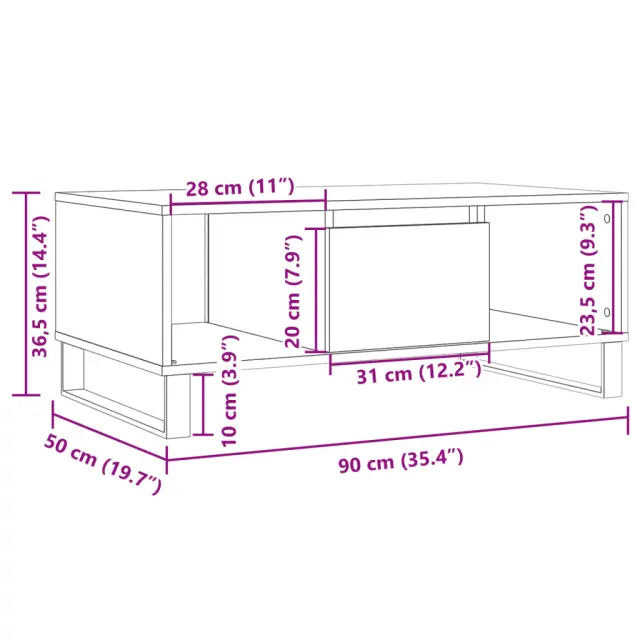 Klubska mizica - kavna mizica - Nizka mizica starinski les 90x50x36,5 cm inženirski les