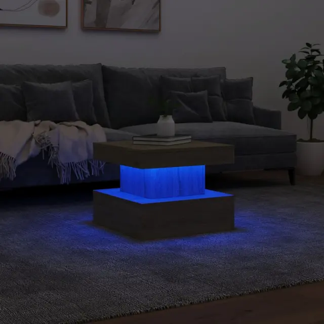 Klubska mizica - kavna mizica - Nizka mizica z LED lučkami sonoma hrast 50x50x40 cm
