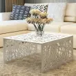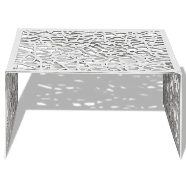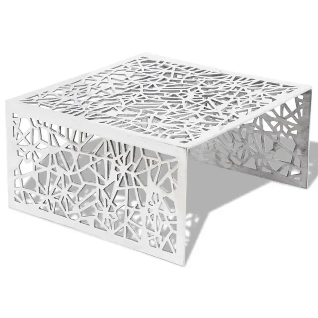 Klubska mizica - kavna mizica - Nizka mizica srebrna geometričen odprt dizajn aluminij