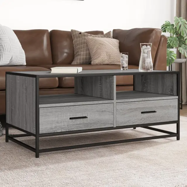 Klubska mizica - kavna mizica - Nizka mizica siva sonoma 100x50x45 cm inžen. les in kovina