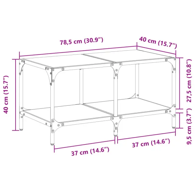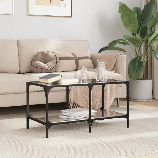 Klubska mizica - kavna mizica - Nizka mizica s črno stekleno površino 78,5x40x40 cm jeklo
