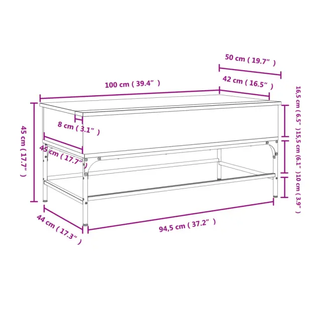 Klubska mizica - kavna mizica - Nizka mizica siva sonoma 100x50x45 cm inžen. les in kovina
