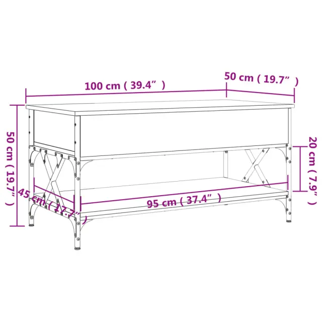 Klubska mizica - kavna mizica - Nizka mizica siva sonoma 100x50x50 cm inž. les in kovina