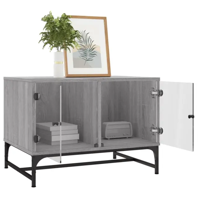 Klubska mizica - kavna mizica - Nizka mizica s steklenimi vrati siva sonoma 68,5x50x50 cm