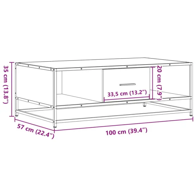 Klubska mizica - kavna mizica - Nizka mizica črna 100x57x35 cm inženirski les in kovina