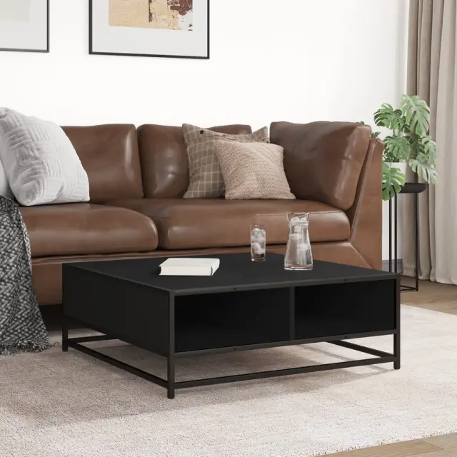 Klubska mizica - kavna mizica - Nizka mizica črna 80x80x30 cm inženirski les in kovina