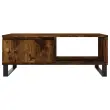 Ta klubska mizica, ki združuje funkcionalnost in lepoto, bo osrednja točka vašega prostora. Trden material: Inženirski les se ponaša z izjemno kakovostjo, gladko površino ter močjo, stabilnostjo in odpornostjo na vlago. Stranska mizica iz inženirskega lesa je preprosta za čiščenje z vlažno krpo.Veliko prostora za shranjevanje: Ta mizica za ob kavč ima 2 predelka, ki ponujata dovolj prostora za shranjevanje, da bodo vaše osnovne stvari dobro organizirane in na dosegu roke.Stabilna površina: Stabilna površina mize za dnevno sobo je idealna za odlaganje knjig, skodelic in drugih okrasnih predmetov.Železne noge: Železne noge mizice za ob kavč zagotavljajo trdnost in stabilnost.Barva: Dimljeni hrastMaterial: Inženirski les, železoDimenzije: 90 x 60 x 35 cm (D x Š x V)Potrebno sestavljanje: Da